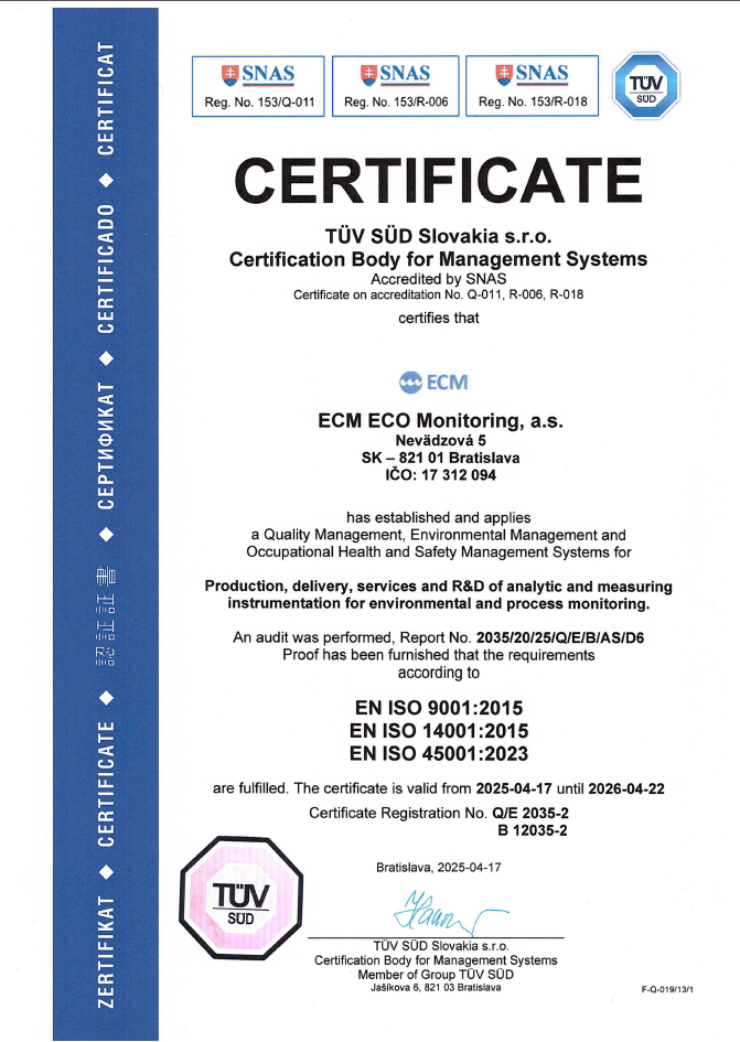 ECM ECO Monitoring od roku 1991 dodáva prístroje a systémy na monitorovanie plynov, kvapalín a častíc pre ekologické aj procesné aplikácie.